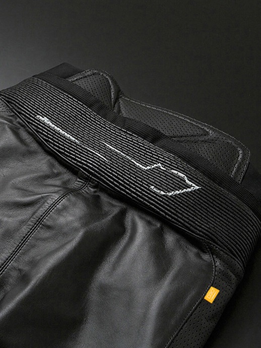 ハイスペックを追求したHSP012DNは、レザースーツ譲りの腰・ヒザシャーリングを装備することで運動性を高め、さらにヒザにはレザースーツと同仕様のD3O®内蔵プロテクターを採用した本格派のレザーパンツです。