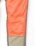 裏地(メッシュインナー)にプロテクターを装着する構造になっています。膝部分にプロテクターの位置を決めるステッチを設けていますので、それを利用して膝プロテクターの位置を2段階で調整することができます。標準装備の膝プロテクターは下側で装着されています。