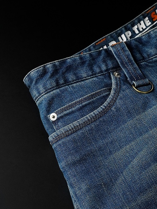 ツーリングからチョイ乗り、日常的なシチュエーションに最適なボトムス“デニムパンツ”。そんなライダーの声から生まれたライディングデニムが“HYOD SPORTS-DENIM”です。素材自体の着用感はもちろん、最も工夫を凝らしたの体の動きに対応するパターンメイキング。とにかく穿きやすいと言われるのはその工夫から生まれています。バイクに跨った際の“腰まわりのフィット感”と“股の開きやすさ”をはじめとした抜群の運動性、“ヒザの曲げやすさ”を可能にするサイズ感と一般のデニムでは考えられないほどの長いレングス(股下の長さ)は、実際に走ってみてはじめて納得できる穿き心地を実現しています。