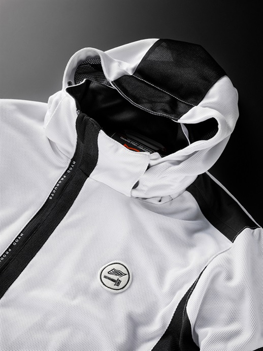 抜群の軽快感を体感することができる、スマートなフーデッドフルメッシュモデル。