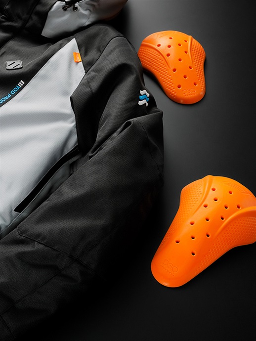 やわらかな曲線を生かしたシンプルデザインのジャケットです。表生地には撥水加工を施し、着用感にすぐれたアウターテキスタイル生地を採用。防水・透湿ベンチレートエアー防水ライナーも装備。裏地には吸汗・速乾性に優れたHYODロゴ入りエアーメッシュを採用。脇下・背中部分には、季節に対応して使用可能なベンチレーションファスナーを採用。フードは着脱式とし、着用シーンにあわせて取り外すことが出来ます。また、インナーキルトジャケットは取り外して、ミドルインナーとして単体使用可能となっており、着用シーンに幅を持たせることが可能。更にインナーキルトジャケットを取り外したアウタージャケット単体着用で、寒冷時期以降の季節にも対応。ショルダー・エルボーにはHYODオリジナルのD3O®プロテクター、バックボーンには軽量で装着感に優れたフォームプロテクターを装備。チェストプロテクターアタッチメント、腹部分にポケットを装備。