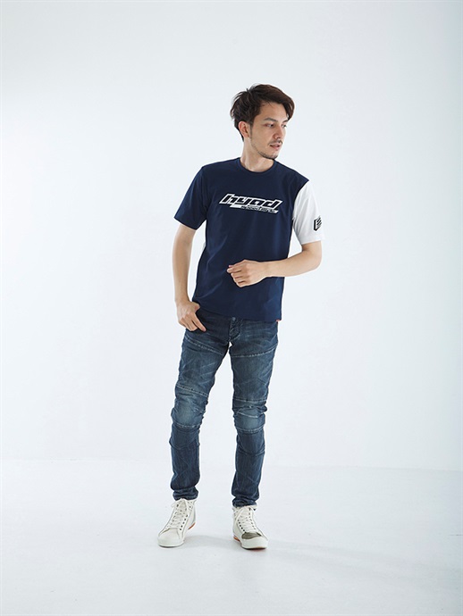 コットンの風合いを持った耐久吸水加工、UVカット(UPF50+)2WAYストレッチの特殊素材を採用。HYODオリジナルパターン、身頃と袖の色をカラフルに変えた遊び心のあるデザインを採用。胸にhyod speed styleロゴをレイアウトしました。ウエアとのコーディネートにも気を配った様々なデザインをラインアップ。