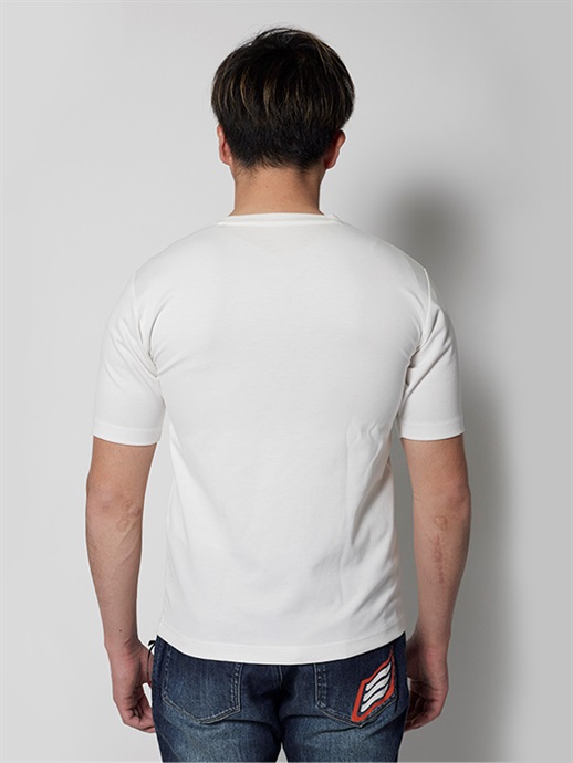 ほどよくフィットするサイズ設定と着心地にすぐれたパターンを採用しています。Tシャツ単体でも、ジャケットのインナーアパレルとしても着られるオールマイティなTシャツに仕上げています。