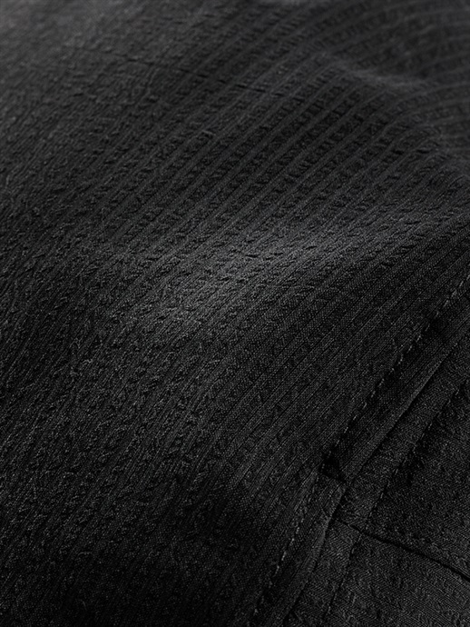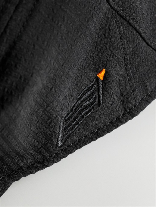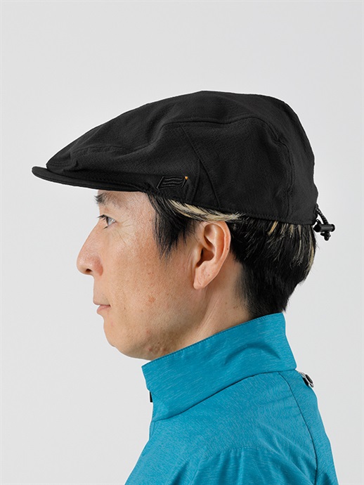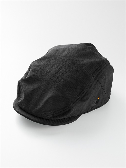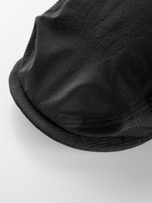 サイドに入る刺繍のクレストマークがワンポイントとなります。生地には細かな凹凸のシボがありシワになりにくい生地を使い、見た目にも涼しげなハンチングに仕上げています。