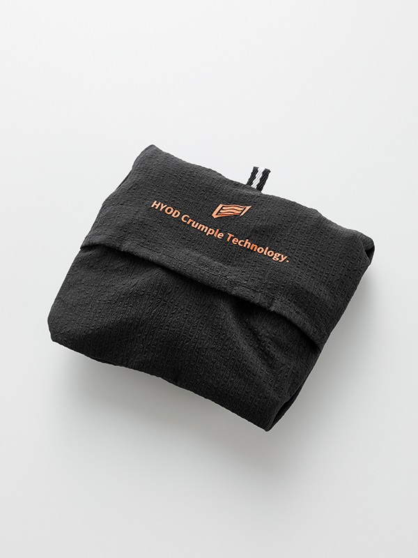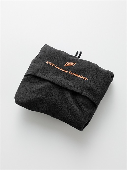 本体裏側にあるポケットに本体を収納できるパッカブルです。収納時の大きさは縦11cm×横13cmぐらいとなり携帯に便利です。別売りのHYODカラビナと合わせてご利用ください。
