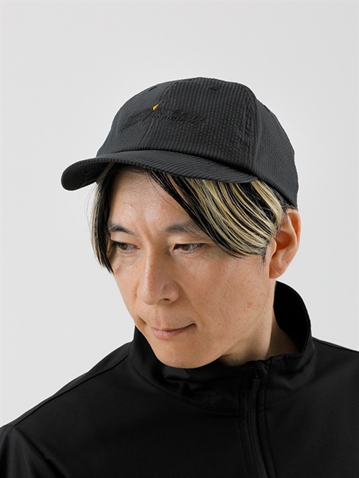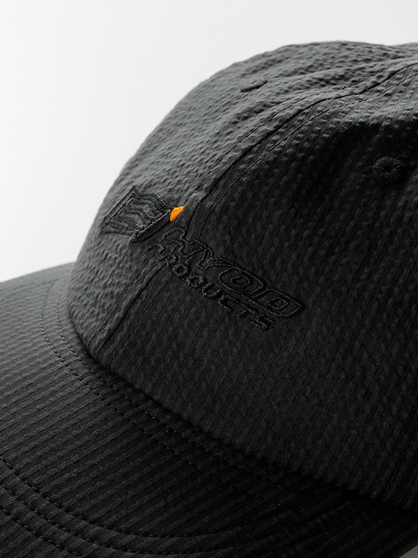フロントに刺繍のHYODコーポレートロゴを配置。本体生地には高い吸水速乾性と高い通気性を備えるCOOLMAX®を採用。涼しく快適な被り心地を体感いただけます。
