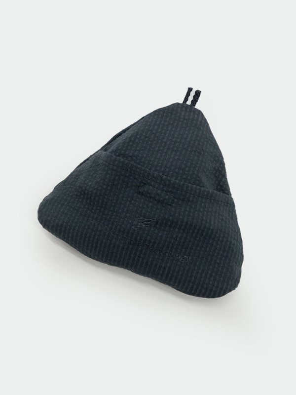 キャップ裏側にあるポケットに本体を収納することができます。収納時は一辺が15cmほどの三角形となり、アウターのポケットなどに入る大きさで携帯に便利です。