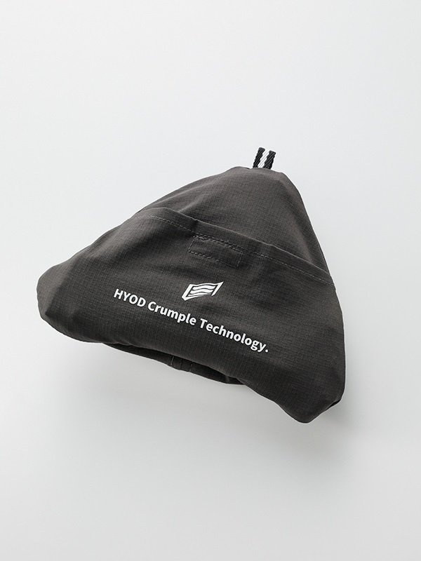キャップ裏側にあるポケットに本体を収納することができ、収納時は一辺が15cmほどの三角形となり携帯に便利です。使用時はバイザーを軽く伸ばして形を整えてから着用してください。