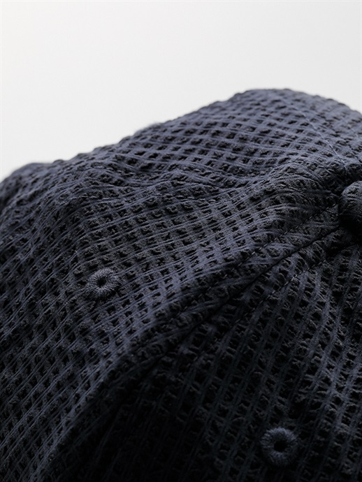 フロントに刺繍のクレストマークとHYODボックスロゴを配置。素材には見た目にも涼しげなシアサッカー生地を採用。通気性がよく、柔らかな被り心地となっています。