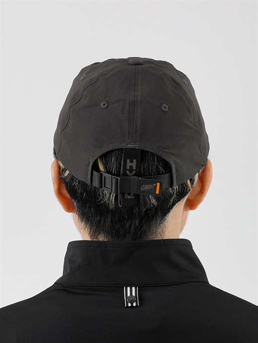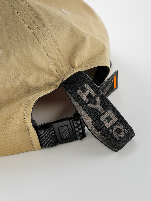 フリーサイズですがサイズ調節用のストラップを備えていますので、幅広いサイズの方にご利用いただけます。HYODの文字が入るジャガードベルトはキャップを丸めて留める時に使います。