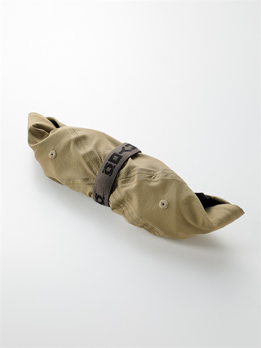 キャップ本体はバイザー側から丸め、キャップの後にあるジャガードベルトで留めることでコンパクトになります。バイザーを大きく折り曲げずに収納できますので、着用時に形を整えやすいのです。