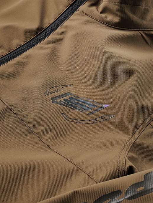 表地と裏地の間に耐水・透湿素材をボンディングした3レイヤー生地を採用したアウターシェルとなります。裏地は肌触りがよく、ストレッチ性もあるトリコット生地を採用することで、快適な着心地を実現しています。