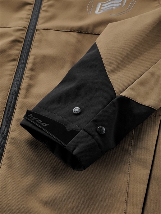 袖口はベルクロでフィット感の調節が可能。グローブに合わせて調節することで、寒風の侵入を防ぐことができます。内部にプラホックを備えていますので、インサレーションウエアとのジョイントが簡単に行えます。