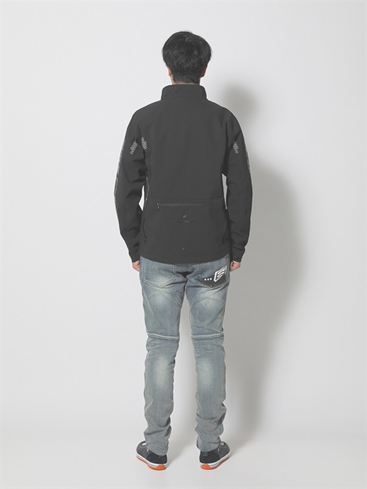 背中と両肩には夜間での他車からの視認性を向上させるリフレクターをプリントしています。安全性が向上するほか、デザイン的にもアクセントとなっています。