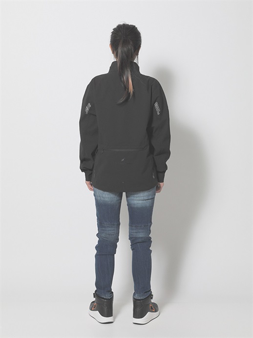 EVOKEは本体背面の腰に備わるポケットに、本体を畳んで収納することができるパッカブルです。収納時は横30cm×縦20cm×奥行8cmのバッグ状になりますので、ツーリング先でアウターシェルを脱いで持ち運ぶことも可能です。