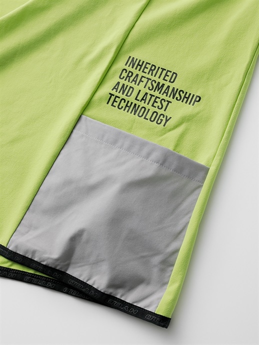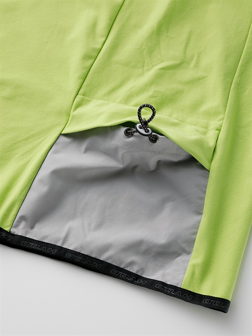 左胸のポケットは着用時にはファスナー付きのカードサイズほどが入るポケットとしてご使用いただけます。このポケットに本体を折り畳んで収納することができるパッカブルです。