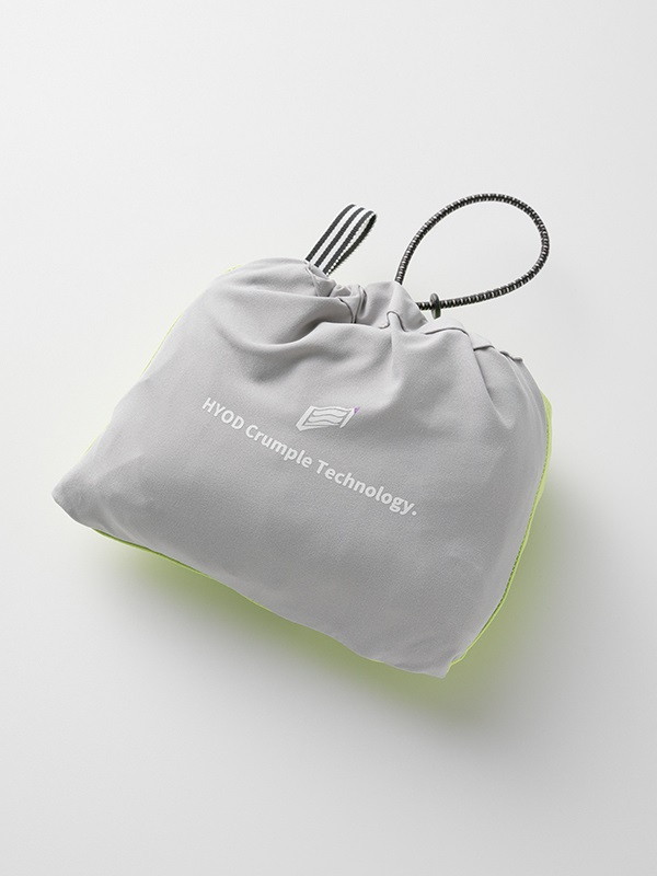 左胸のポケットに本体を畳んで収納することができます。収納時のサイズは縦15cm×横12cm、厚さ5cmほどとなります。軽くて携帯性にすぐれますので、バッグや車両の小物入れに入れておくと便利です。