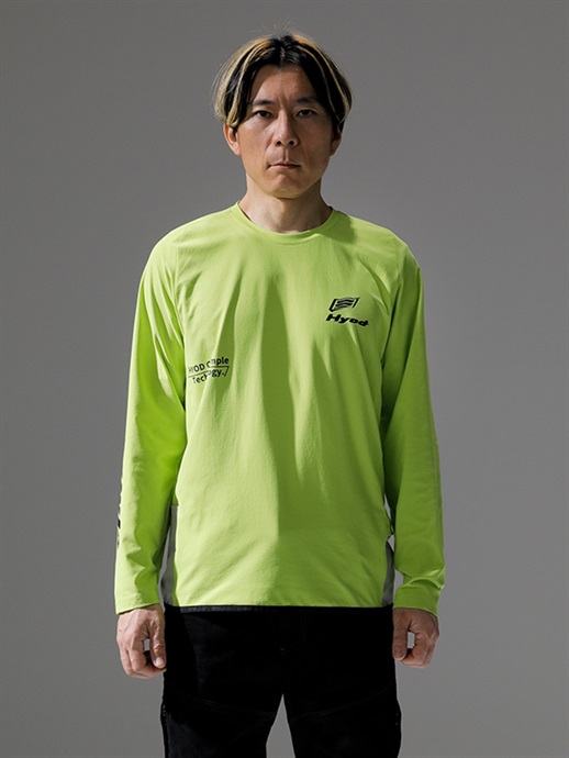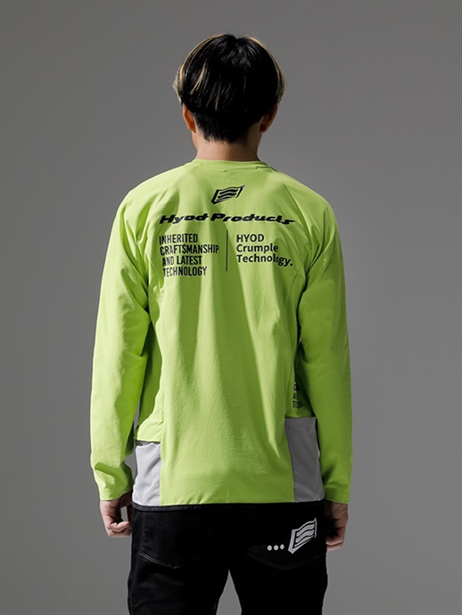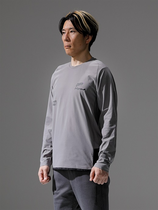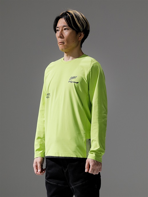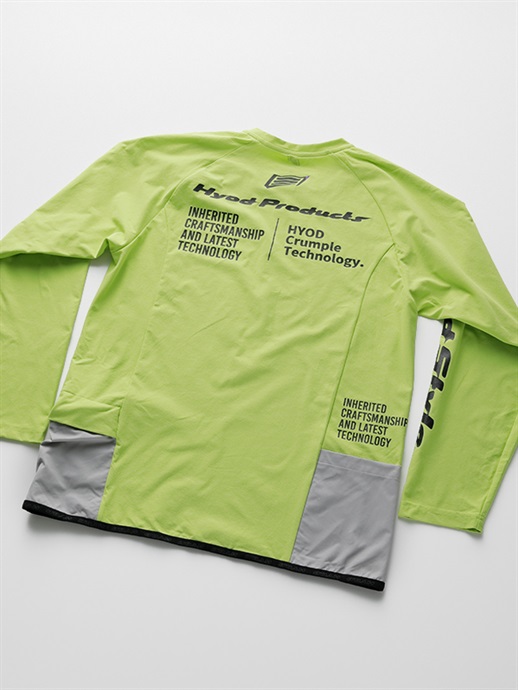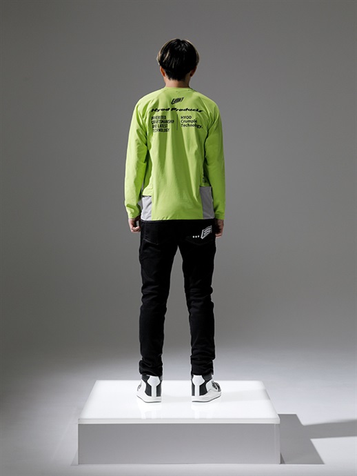 タテ、ヨコに伸びるストレッチ性のある生地は、コットンのような柔らかいタッチの風合いに、吸水性・透け防止を備えた高機能素材です。紫外線を防ぐ指標のUPFは50+と最高クラスです。