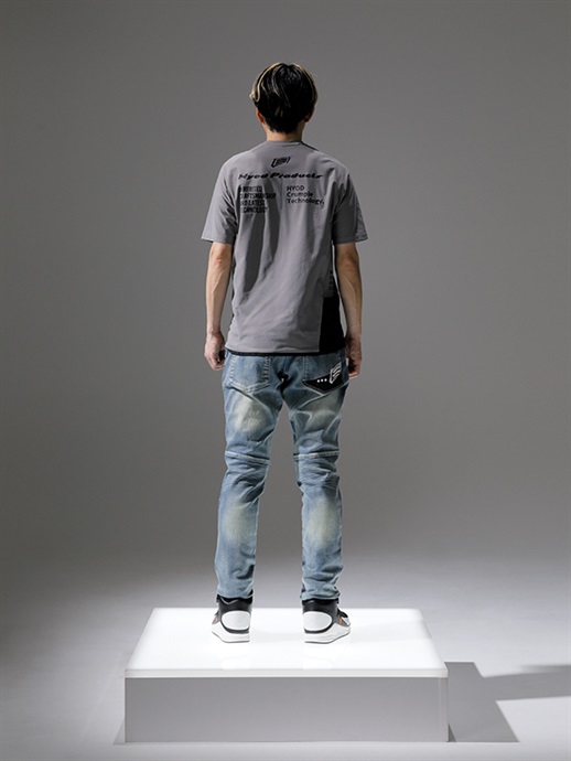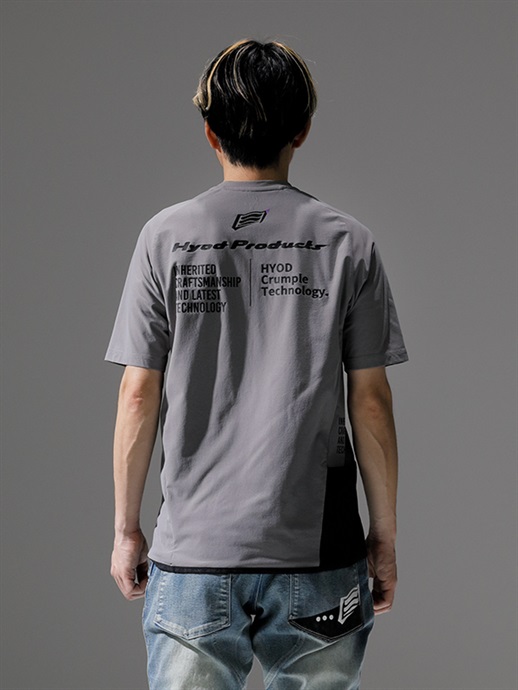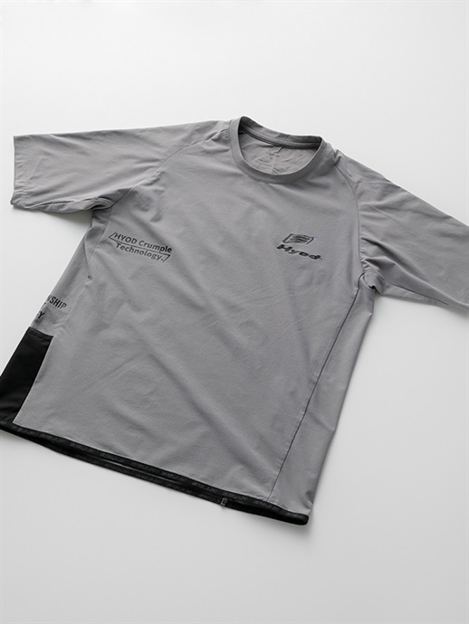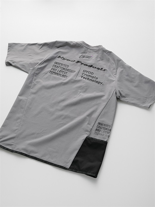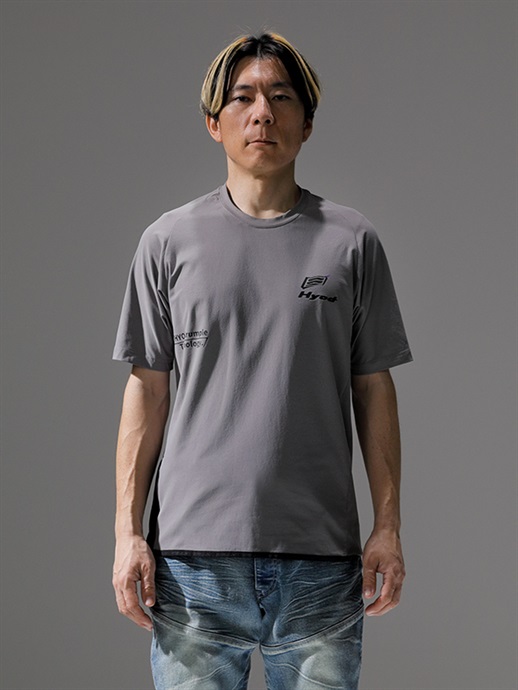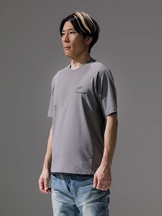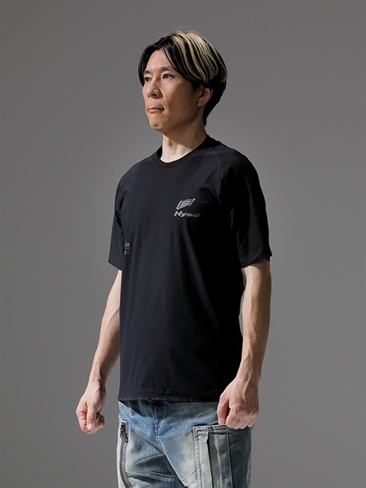左胸をはじめ各所にプリントを配したラグランスリーブのTシャツ。ストレッチ性のある生地はコットンのような柔らかいタッチの風合いに、吸水性・透け防止を備えた高機能素材です。紫外線を防ぐ指標のUPFは50+と最高クラスです。