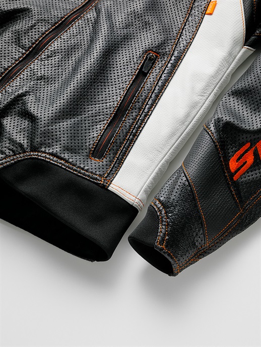 レーシングレザースーツをストリートライディング用にアレンジした運動性と快適性を両立した“スポーツレザー”です。ストリートライディング専用のシリーズ「ST-X」のアイデンティティを色濃く反映したモデルでSPEED-STYLEデザインを継承する一着です。パンチングメッシュ加工を施したカウライトレザーのソフトな着心地に加え、両袖口と裾廻りをやさしく包み込むリブ使いもフルレザーのウエアとは思えないほどの心地よいフィット感を実現しています。肩と肘にソフトでフレキシブルな驚異の衝撃吸収材、D3O®プロテクターを装備し、快適な着心地とハイスペックな安全性能を両立させています。着脱可能なウインドブロックインナーを装備し外気の気温変化にも対応します。