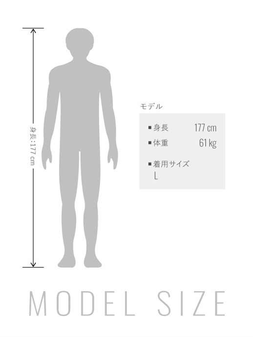 ※上記のSIZE TABLEは製品の実寸法ではなく、各サイズ表示に対して基準となる身体のサイズを示しています。 また、上記のサイズは目安ですので、体型によっては異なる場合があります。