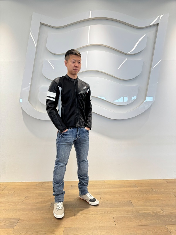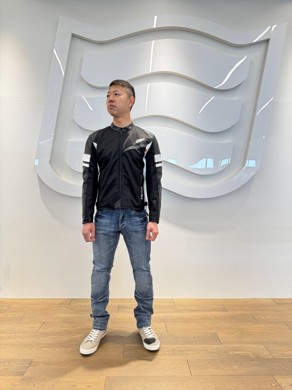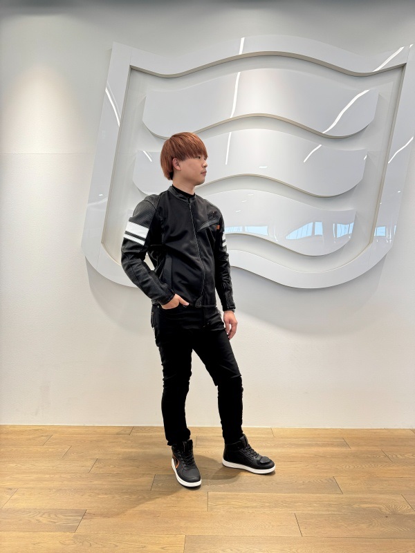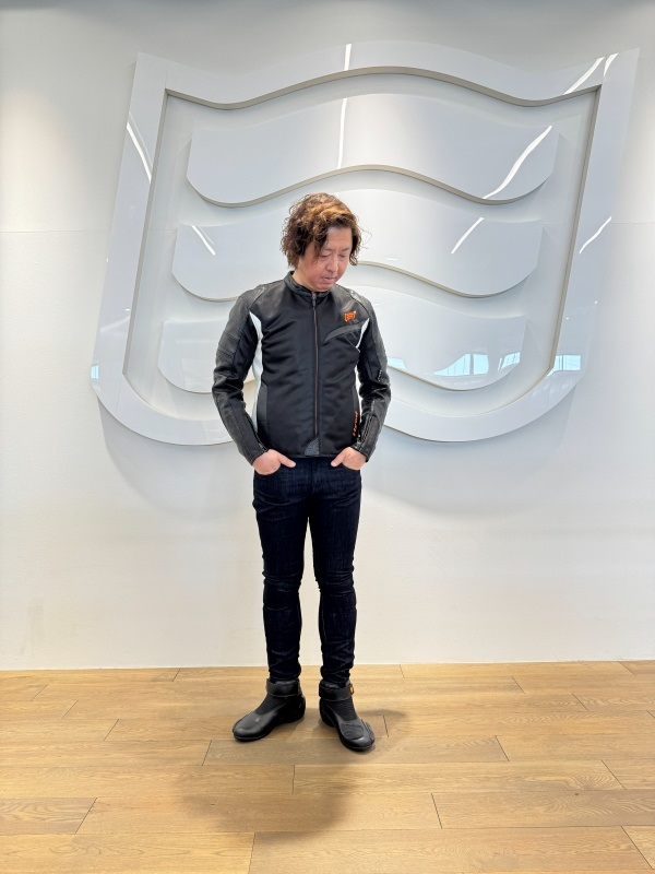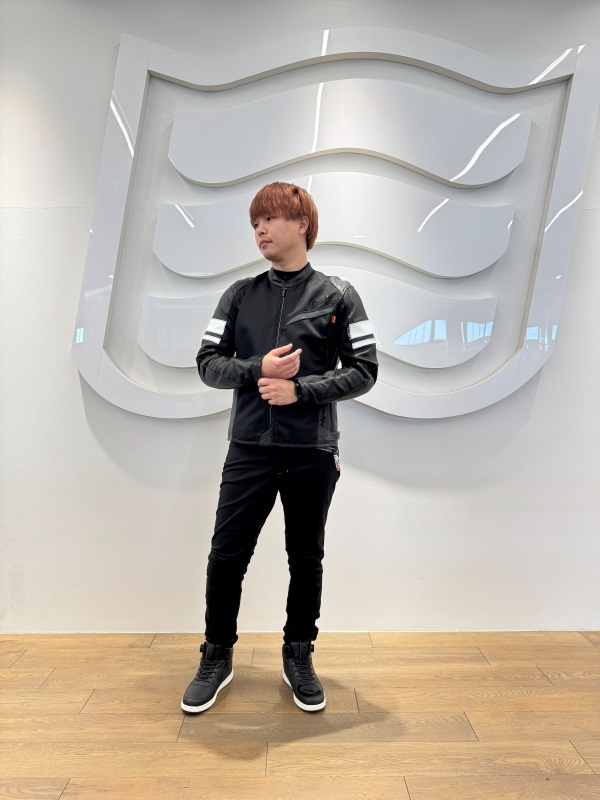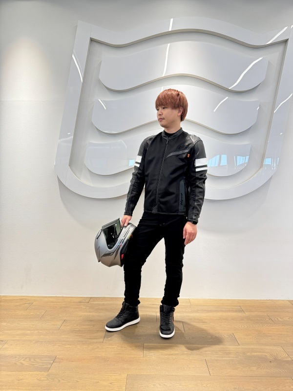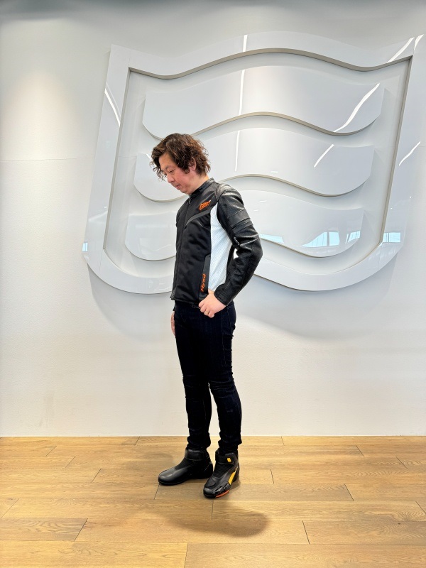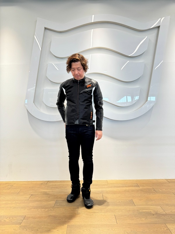 ジャケットの下に身につけるエアバッグウエア“AIR-BOOST”。日本人専用設計で、安全性能をアップグレードできます。