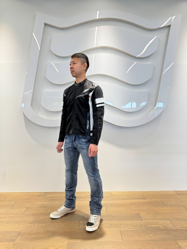 HYOD AIR-BOOSTはHYODが日本人の体型に合わせて独自に開発した専用パターンとストレッチ素材を組み合わせることで、ライディング時のフィット感にすぐれ、動きやすくて着ていることを感じさせない着用感となっています。サイズはSサイズから3Lサイズを取り揃え、体型に合うサイズをお選びいただくことでより安全性は高くなります。また、本体前面にエアスルーホールを配置するほか、フロントとサイドに通気性と伸縮性のあるメッシュパネルを採用。さらに本体裏地には通気性にすぐれるダブルラッセルを採用することで内側の蒸れを軽減し快適性を実現しています。レザーウエアからテキスタイルウエアまで、自分好みのアウタージャケットの下に着用できるHYOD AIR-BOOSTで安全性能をアップグレードできます。
