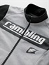 背中には“rambling”のロゴを大きく配置しています。ライディング姿勢を考慮したパターンを採用して背中側の裾丈を調節。乗車姿勢でも背中側が大きくまくれ上がることはありません。