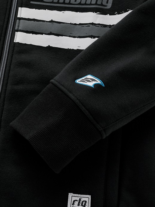 袖口は肌当たり良好で伸縮性のあるリブニット。袖の長さはジャケット下にインナーとして着用した際に干渉しない適度な長さとしています。左袖口に刺繍を施しアクセントとしています。