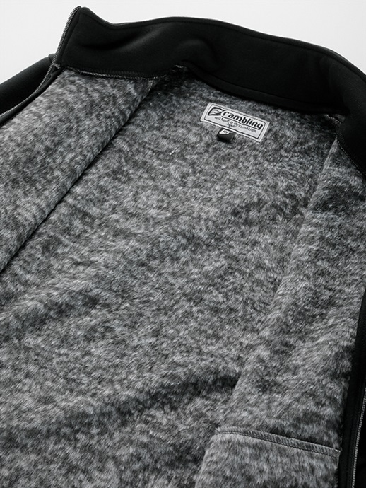 スタンドカラーのネック部の高さや襟ぐりなどはアウタージャケットとの干渉を考慮した高さとしています。ファスナー上部にガードをつけていますので、ファスナーが肌に直接触れることはありません。
