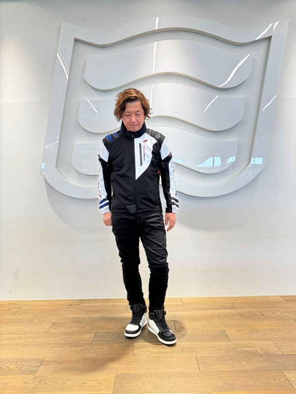 ジャケットの下に身につけるエアバッグウエア“AIR-BOOST”。日本人専用設計で、安全性能をアップグレードできます。
