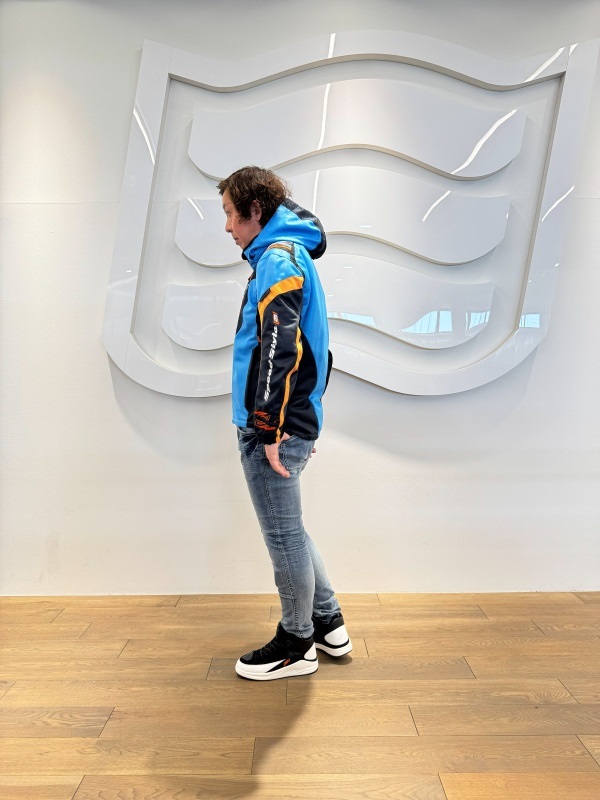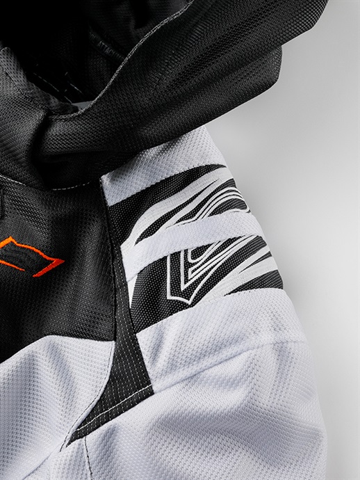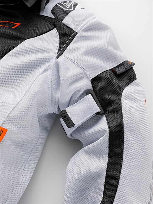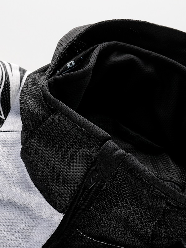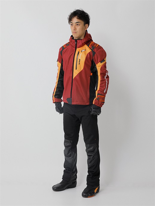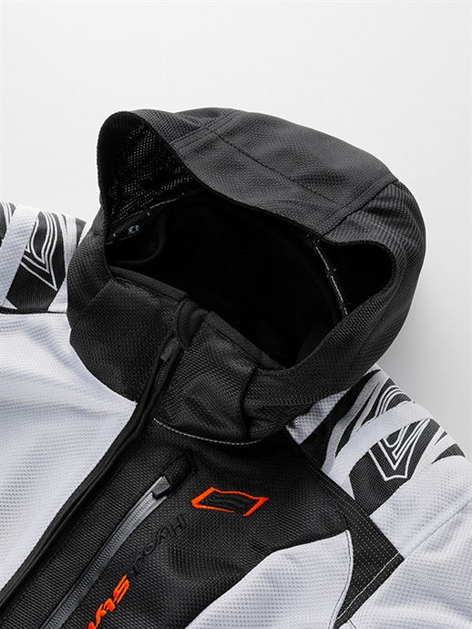 季節限定生産 ST-X SPEED PARKA D3O®は、フロントにアシンメトリーデザインを採用し、HYODらしい表情を持たせながらライディング時の快適さを重視したスポーツテキスタイルジャケット。 パターンには、過酷なレースシーンからのフィードバックをもとに開発されたHYODストリートライディング専用の「ST-Xパターン」を採用しています。ライディング時の姿勢や操作に伴う身体の動きを想定し、背幅と前幅のバランスや袖山の高さを細かく調整。前傾姿勢での上半身の収まりや、ハンドル操作時の肩・腕の動きにも自然に追従するフィット感へと仕上げました。 表地には通気性と発色性に優れたブライトⅡメッシュを使用し、走行風を取り込みやすい構成としています。裏地には吸汗速乾性に優れたHYODロゴ入りオリジナルエアメッシュを採用し、肌離れの良いサラサラとした着心地を確保。春夏シーズンを中心に、快適なコンディションを保ちます。 プロテクションは、ショルダーとエルボーにD3O Diablo™プロテクター(CE規格 LEVEL1)を装備。フレキシブルで軽量な特性により動きを妨げにくく、自然な装着感を実現しています。バックボーンには軽量でソフトなウレタンフォームを採用し、着用時の快適性にも配慮しました。 上腕のアジャスターベルトが走行中のバタつきを抑え、裾口のドローコードが風の巻き込みを軽減。首まわりにはソフトなストレッチニットをあしらい、やさしい肌触りに仕上げています。着脱可能なフードは走行風の影響を受けにくい形状とし、折り畳んでコンパクトに収納することも可能。首裏にはウォータークーリングネックブースター用のクールアタッチメントを備え、チェストプロテクターやインサレーションウエアの装着にも対応します。バックショルダーのリフレクターが夜間の視認性を高めます。 ST-X SPEED PARKA D3O®は、アシンメトリーデザインを纏いながら、運動性と快適性をバランスよく備えた一着。HYODのアイデンティティを体現するフーデッドテキスタイルジャケットです。