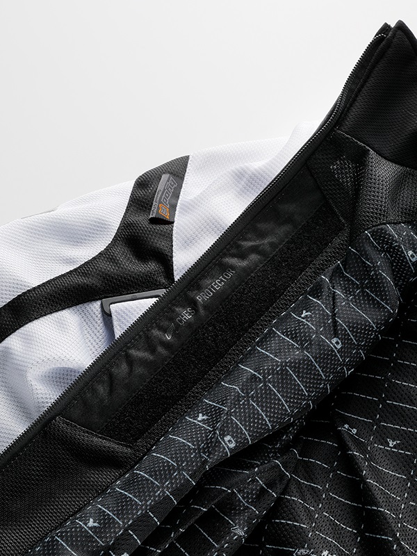D3O®素材を採用したチェストプロテクターは、薄くしなやかで身体の動きに自然に追従。装着していることを意識させない快適なフィット感を実現しながら、万一の衝撃を効果的に吸収します。胸部は特に守りたい重要な部位のひとつ。自分自身はもちろん、大切な人を悲しませないためにも備えておきたい装備です。ワンピースとツーピースをラインアップしています。