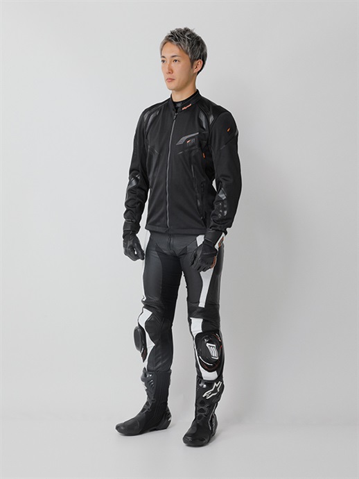 季節限定生産 ST-X THE MESH D3O® PROTECT JAC〔ALTIS〕は、走行風を心地よく取り込みながら、夏のライディングを快適に楽しむことを目指して開発されたTHE MESHカテゴリーのテキスタイルジャケット。ざっくりとしたメッシュ素材ならではの高い通気性を活かし、暑い季節でも風を感じながら走る感覚を大切にしています。 パターンには、HYODレザースーツ開発からのフィードバックを反映したHYODオリジナルのST-Xパターンを採用。ライディング時の姿勢や操作に伴う身体の動きを前提に設計され、前傾姿勢での上半身の収まりやハンドル操作時の肩・腕の動きにも自然に対応します。メッシュジャケットでありながら、走行中の安定感とフィット感をしっかりと備えた仕上がりです。 メインマテリアルには、高い通気性と十分な生地強度を兼ね備えた「HYODアルティマメッシュ」を使用。ライナーレス構造とすることで走行風をスムーズに通し、メッシュ素材本来の空冷性能をより引き出しています。軽量でシンプルな構成が、風を味方に走る心地よさを支えます。 プロテクションは、ショルダーとエルボーにD3O Diablo™プロテクター(CE規格 LEVEL1)、バックボーンには通気性に優れたD3O® Viper Airバックボーンプロテクター(CE規格 LEVEL1)を装備。軽量かつ通気性に優れた構成により、フルプロテクションでありながら涼しさと快適性を両立します。 クールアタッチメントやチェストプロテクターアタッチメントへの対応、オートロックファスナーの採用など実用面も充実。背中・肩・肘の内側には吸汗速乾性に優れたメッシュを配し、汗をかいた状態でもベタつきにくく、快適さが持続するよう配慮しています。 ストロボモチーフにインスパイアされた〔ALTIS〕デザインは、シャープさの中にHYOD STYLEを感じさせる仕上がりに。 ST-X THE MESH D3O® PROTECT JAC〔ALTIS〕は、風を味方につけながら、サマーシーズンのライディングを涼しく快適に楽しみたいライダーに向けた一着です。