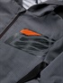 ジャケットの内側にHYOD D3O®チェストプロテクターを装着するアタッチメント(面ファスナー)を装備しています。ワンピースタイプのチェストプロテクターは2カ所で、ツーピースモデルは左右それぞれ1カ所で固定することができます。