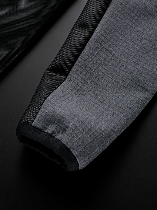 クールテックウエアの本体には通気性のあるワッフル調のストレッチ生地、身頃の側面と下袖には目が細かく通気性にすぐれたテキスタイルメッシュ素材を採用しています。ほどよいゆとりとフィット感のあるパターンとストレッチ性にすぐれた生地の組み合わせで、ライディングポジションをした際でもストレスのない動きと着心地を実現しています。ブラック/ブラックはパターンの異なるワッフル調生地になります。