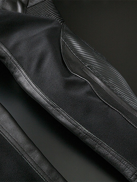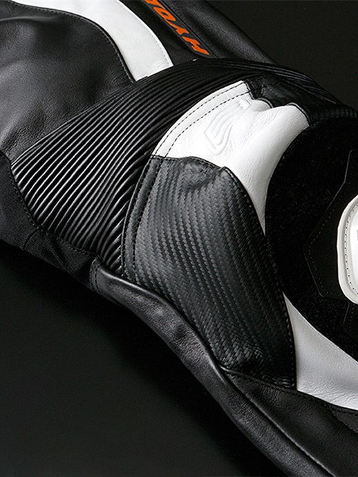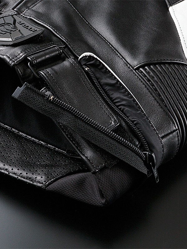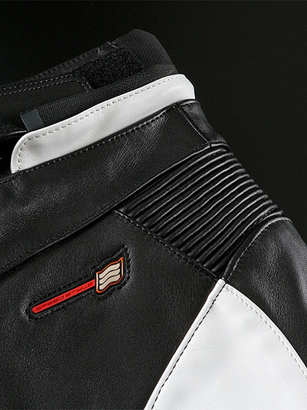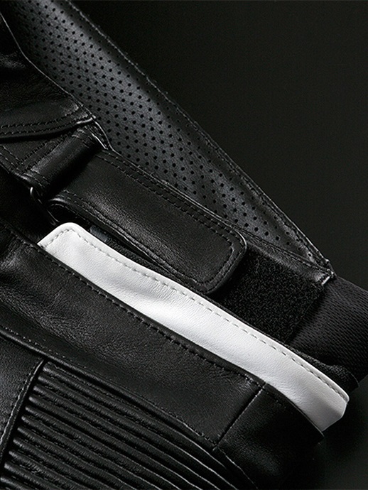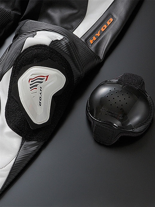 HYODレーシングスーツで定評のあるニープロテクションやシャーリングなど、スポーツライディングパンツとしてフルスペックで装備しています。きめが細かく上品な光沢感と風合いを持つフラットステアレザーを採用しました。BLACK/WHITEではスポーティーなテイストを醸し出すカーボンレザーを部分的に使い、スポーツライディングパンツとしての趣を強くしています。膝にはポリエチレンカップとEVAフォームによるプロテクターを装備し、ヒップ(腰サイド)にはフィット感と耐摩耗性を併せ持つ10mm低反発フォームを採用しています。ヒザとウエストにはシャーリングを装備するほか、股下から裾口にかけて耐摩耗性に優れた防風ストレッチナイロンを採用し、運動性を向上させています。また、膝には軽量コンパクトなスポーツスライダーも標準で装備しています。本体裏地には吸汗・速乾性に優れたHYODロゴ入りのエアーメッシュを採用することで、激しいライディングの後でもさらっとした肌触りを実現。もちろん、ジャケットとのジョイントも可能なHYODスポーツスーツシステムにも対応しており、ST-Xレザージャケットと組み合わせてストリートスーツとしてもご利用いただけます。秋冬でもスポーツライディングを楽しみたい方におすすめのレザーパンツです。