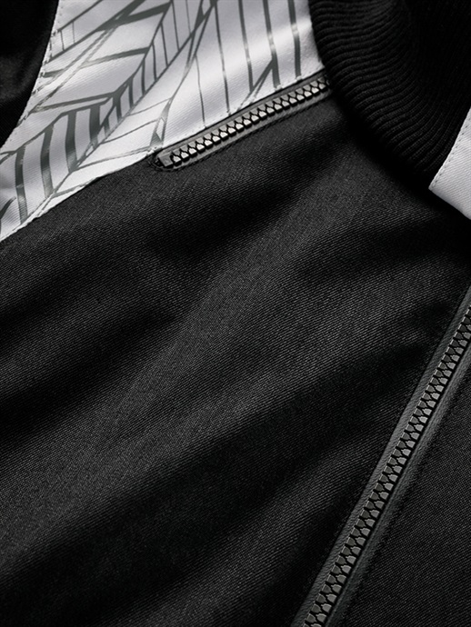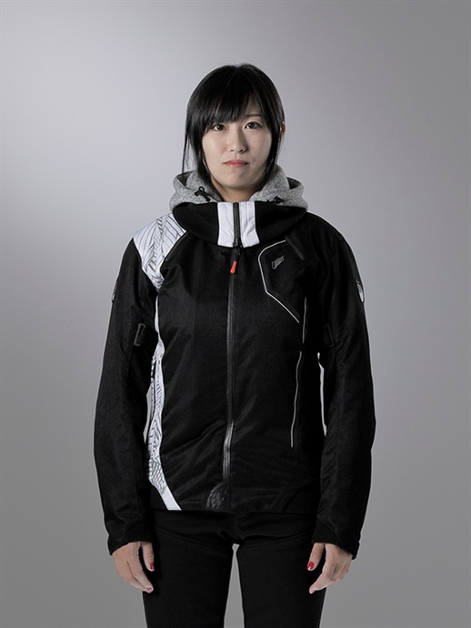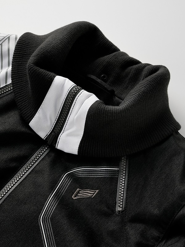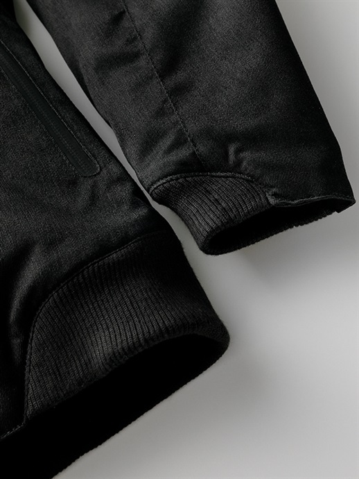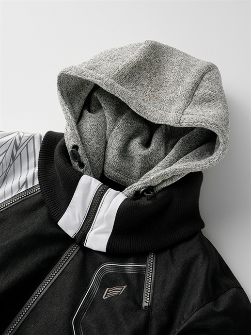 着やすさと心地よさを重視して、襟まわりは着脱式のフード&リブニット素材を使ったタートルネック仕様で仕上げています。バイクから降りた後の様々なシーンで、心地よい着心地とやさしい肌ざわり、ほどよい保温性を体感していただけます。