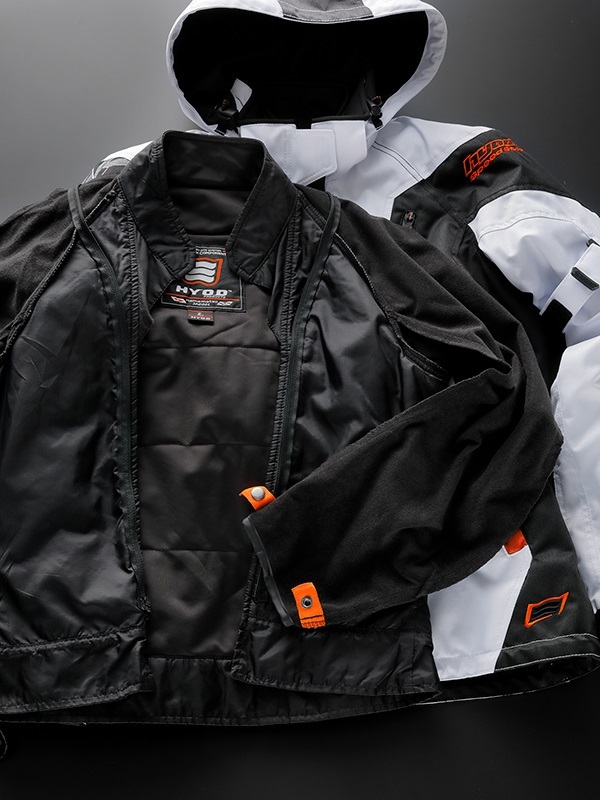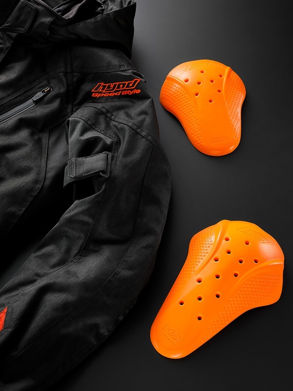 肩と肘にソフトでフレキシブルな驚異の衝撃吸収材、D3O®プロテクターを装備して、快適な着心地とハイスペックな安全性能を両立させています。また、背中には高反発タイプのウレタンフォームパッドを標準装備しています(ウレタンフォームパッドからHYZ902・D3O® VIPER STEALTHバックボーンプロテクターにアップグレードしてプロテクション性能を高めることも可能です)。D3O®プロテクターはいずれも欧州の厳しい安全基準「CE規格」をクリアしています。