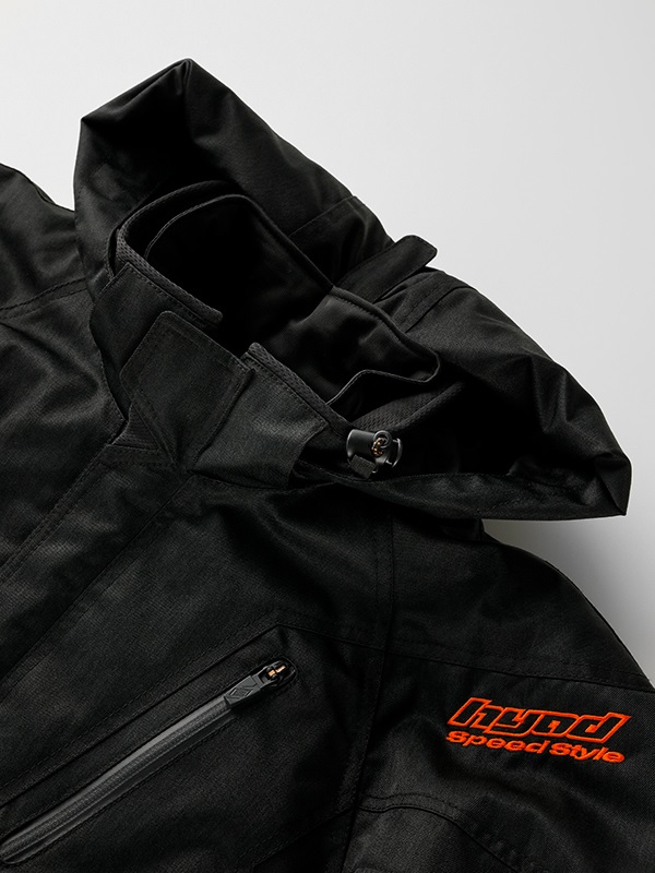 ファスナーでジョイントしているフードは取り外すことができます。高速走行によるフードのバタつきが気になるときやジャケットの印象を大きく変えたいときなど、自分の好みやTPOに応じて使い分けができるのもフーデッドウエアの特徴のひとつです。
