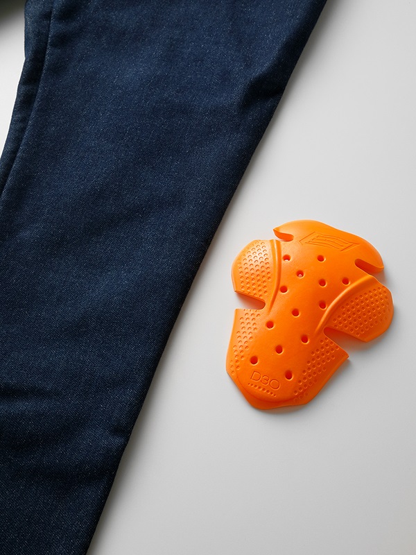 膝には衝撃吸収力と装着感に優れたD3O®プロテクターを標準装備しています(着脱可能)。体型に合わせて上下2段階の位置調節ができます。プロテクションがソフトでフレキシブルなため、着け心地やデザイン、シルエットなど多くのメリットを生み出しています。