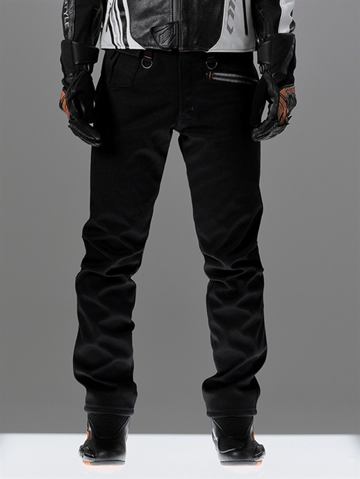 寒風を受けて走るライダーのボトムス(下半身)は、風圧により予想以上に過酷な状況を強いられます。HYODウインターデニムは、表素材にウレタンフィルム(防風)とマイクロフリース(保温)をボンディング(接着)し、さらに風を直接受ける前側にはソーラーセンサー(蓄熱・保温)を装着して、防風性と保温性を向上させています。スタイリッシュなシルエットを保ちながら抜群の保温性を誇るHYODウインターデニム。冬ライドのマストアイテムとなっているのは、スタイルの良さだけに留まらないその暖かさが理由となっているのです。