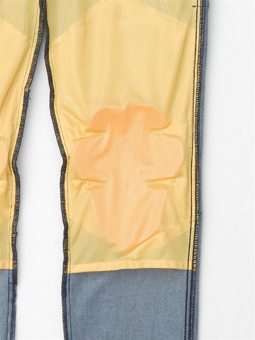 裏地(メッシュインナー)にプロテクターを装着する構造になっています。膝部分にプロテクターの位置を決めるステッチを設けていますので、それを利用して膝プロテクターの位置を2段階で調整することができます。 ※画像はD3O®プロテクターを装着した状態です。