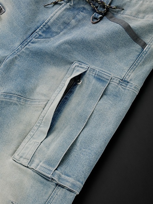 HYOD Covec®デニムパンツは、Covec®の持つ機能(引裂き強度・耐切断性・耐摩擦強度・対破裂性など)をすべて保持するCovec® yarns(コベック糸)を使ったデニム“oneskin”を採用しています。ストレッチ性のある軽量構造のデニムでありながら、切断や引裂き強度、耐摩耗性に優れた“高強度ストレッチデニムパンツ”に仕上げています。