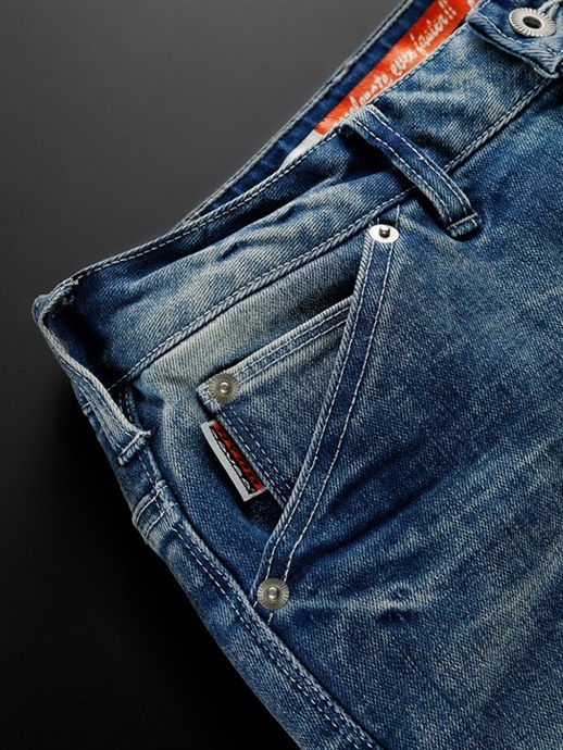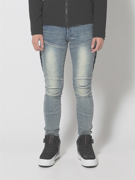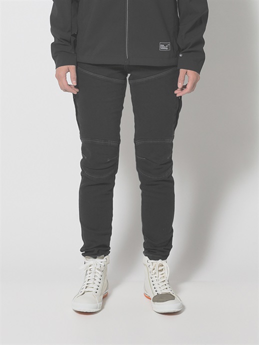 最も工夫を凝らしたのは体の動きに対応するパターンメイキング。バイクに跨った際の“腰まわりのフィット感”と“股の開きやすさ”をはじめとした運動性、“ヒザの曲げやすさ”を可能にするサイズ感と一般のデニムと比較して長いレングス(股下の長さ)が大きな特徴です。