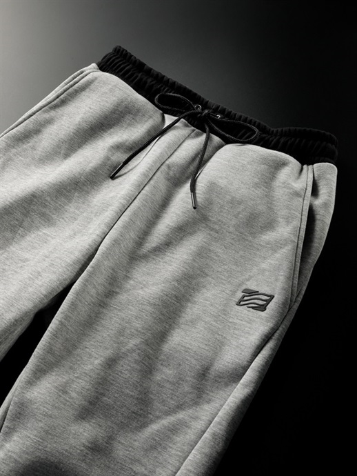 スウェット素材に防風フィルムをボンディングし、防風・防寒性を兼ね備えたスポーツカジュアルスタイルのスウェットパンツです。