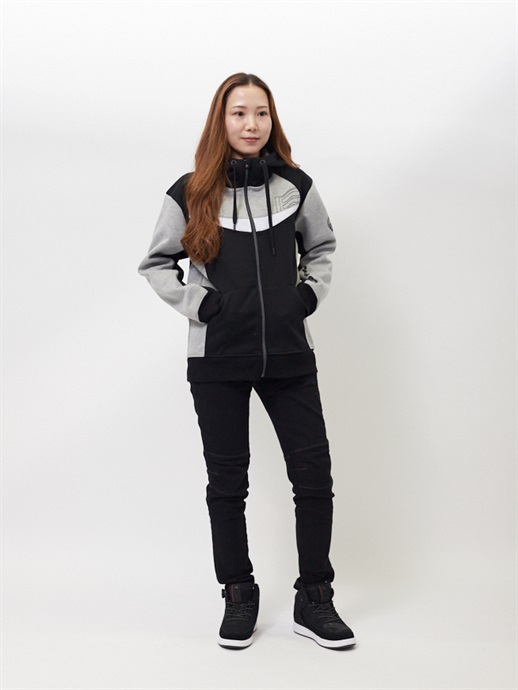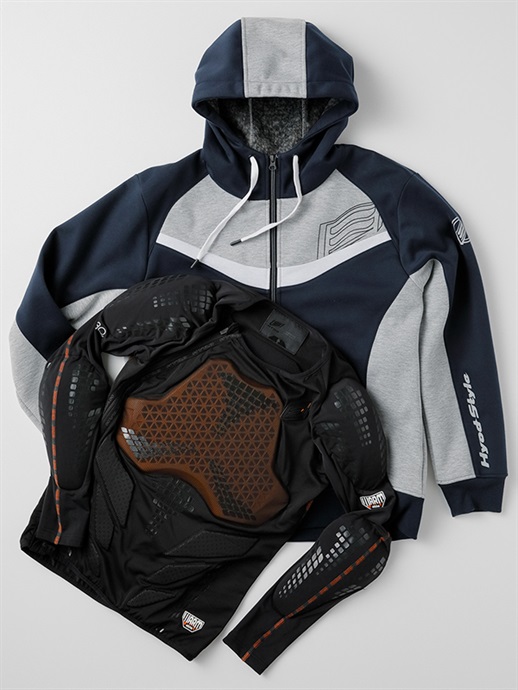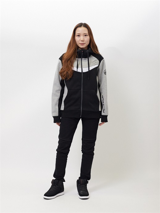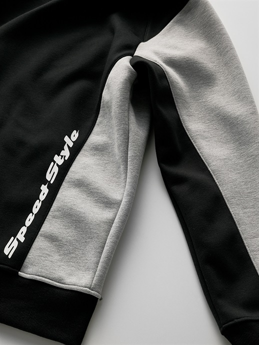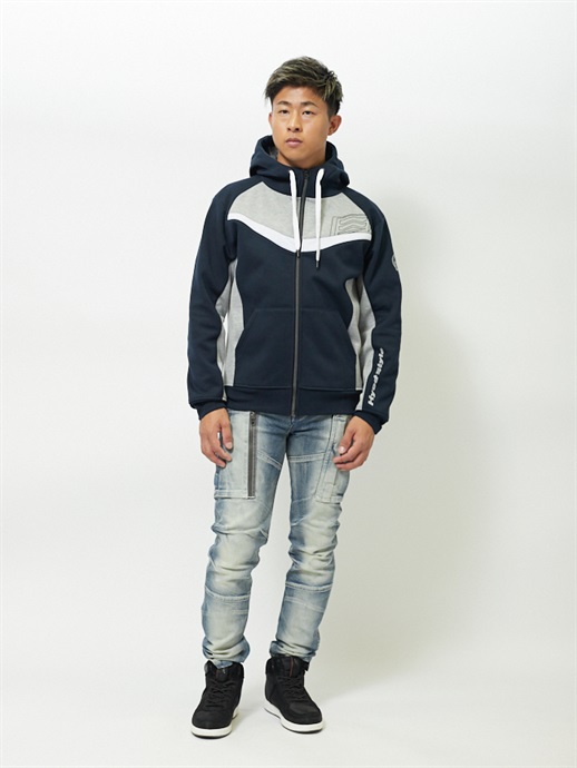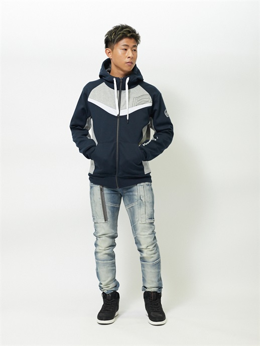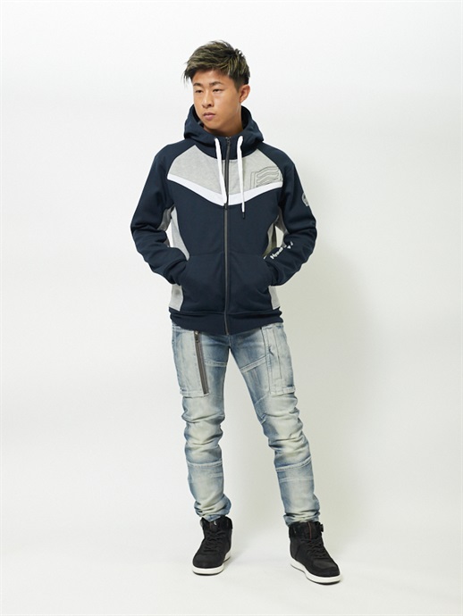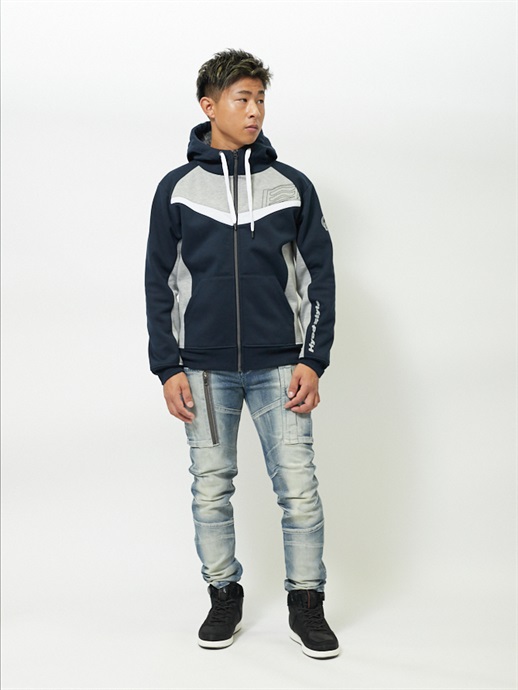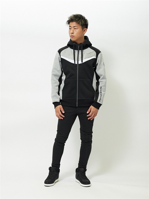 左胸にクレストマークを配したフルジップタイプのウインドブロックパーカです。左袖には“Hyod Style”背面の右わき部に“Speed Style”のロゴを小さめにレイアウトしています。