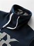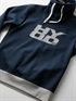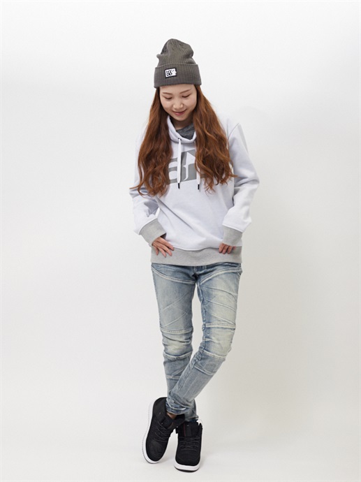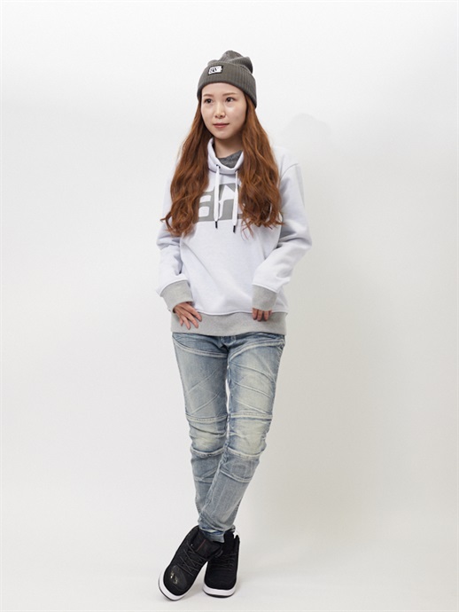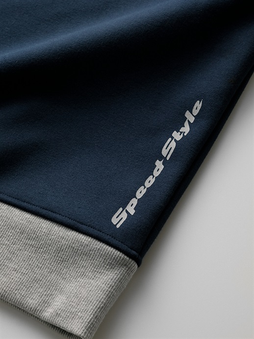 首まわりをすっぽりと覆うことのできるモックネック仕様のスウェットシャツです。首まわりのドローコードは、ネック内側のホールから首側に引き出せる仕様にしています。お好みに応じて使い分けすることができます。
