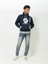 首まわりをすっぽりと覆うことのできるモックネック仕様のスウェットシャツです。首まわりのドローコードは、ネック内側のホールから首側に引き出せる仕様にしています。お好みに応じて使い分けすることができます。