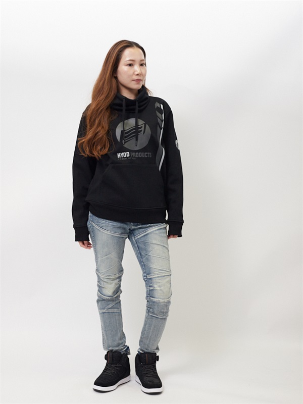 スウェット素材に防風フィルムと肌ざわりにすぐれたシャギー素材をボンディングした3レイヤーの“防風性”・“防寒性”・“保温性”にすぐれたHYODオリジナルのコンフォート素材を採用しています。